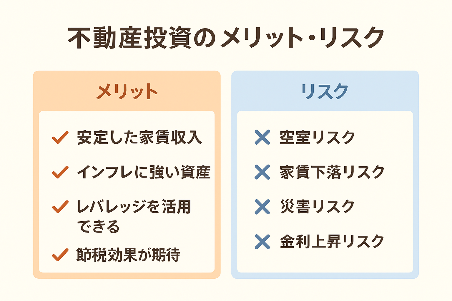 投資 不動産投資って本当に儲かる?初心者が知るべきメリット・リスク はじめに「副収入を得たい」「老後の資産形成を考えたい」――そんな思いから、不動産投資に関心を持つ人が増えています。実際に不動産投資は、株式や投資信託とは違う安定収入を得られる手段として注目されていますが、必ずしも「楽して儲かる」わけではあり... 2025.09.22 投資