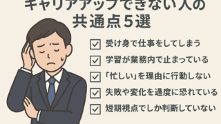 お金全般 キャリアアップできない人の共通点5選|今日から変えられる行動習慣とは 「頑張っているつもりなのに評価されない」「周りはどんどん成長しているのに、自分だけ置いていかれている気がする」こうした悩みを抱えている人は少なくありません。実は、キャリアアップできるかどうかは、能力や学歴だけで決まるものではありません。日々... 2026.01.26 お金全般